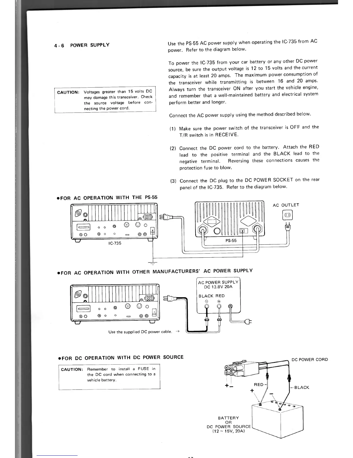 Use the PS-55 AC power supply when operating the IC-735 from AC