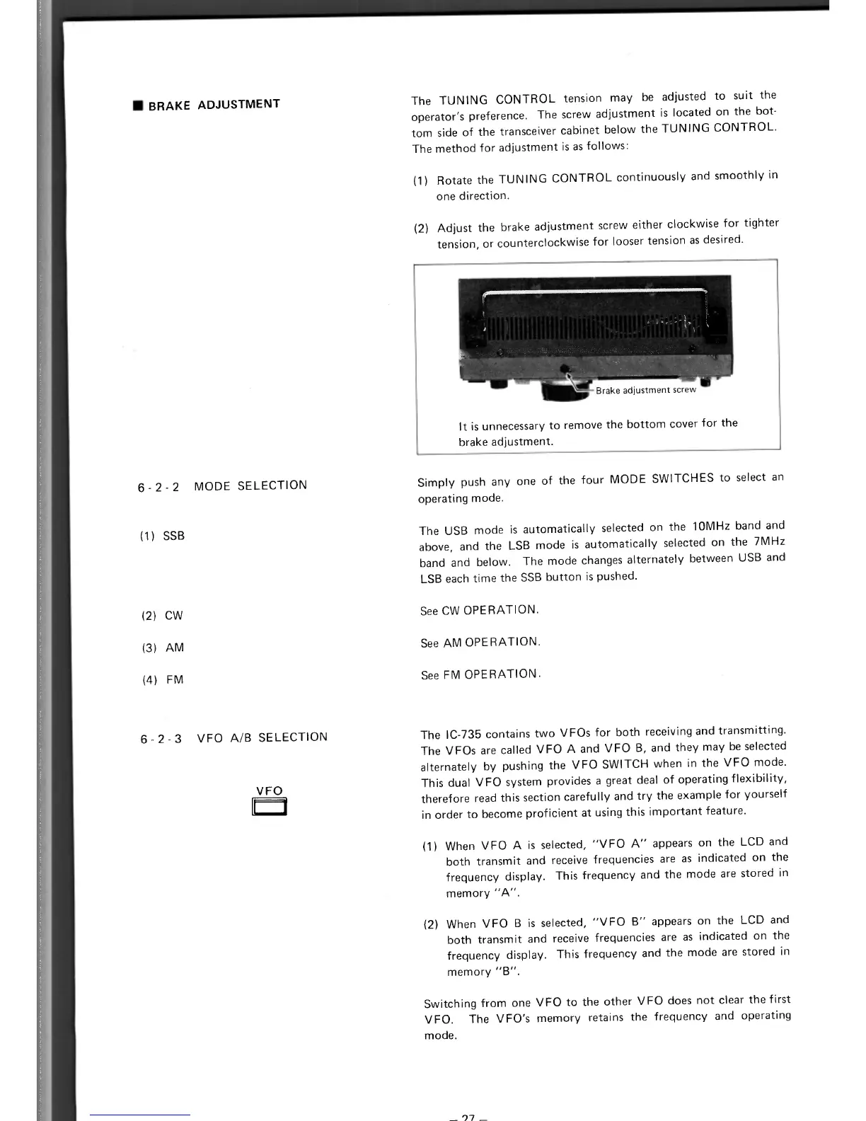 The IC-735 contains two VFOs for both receiving and transmitting.