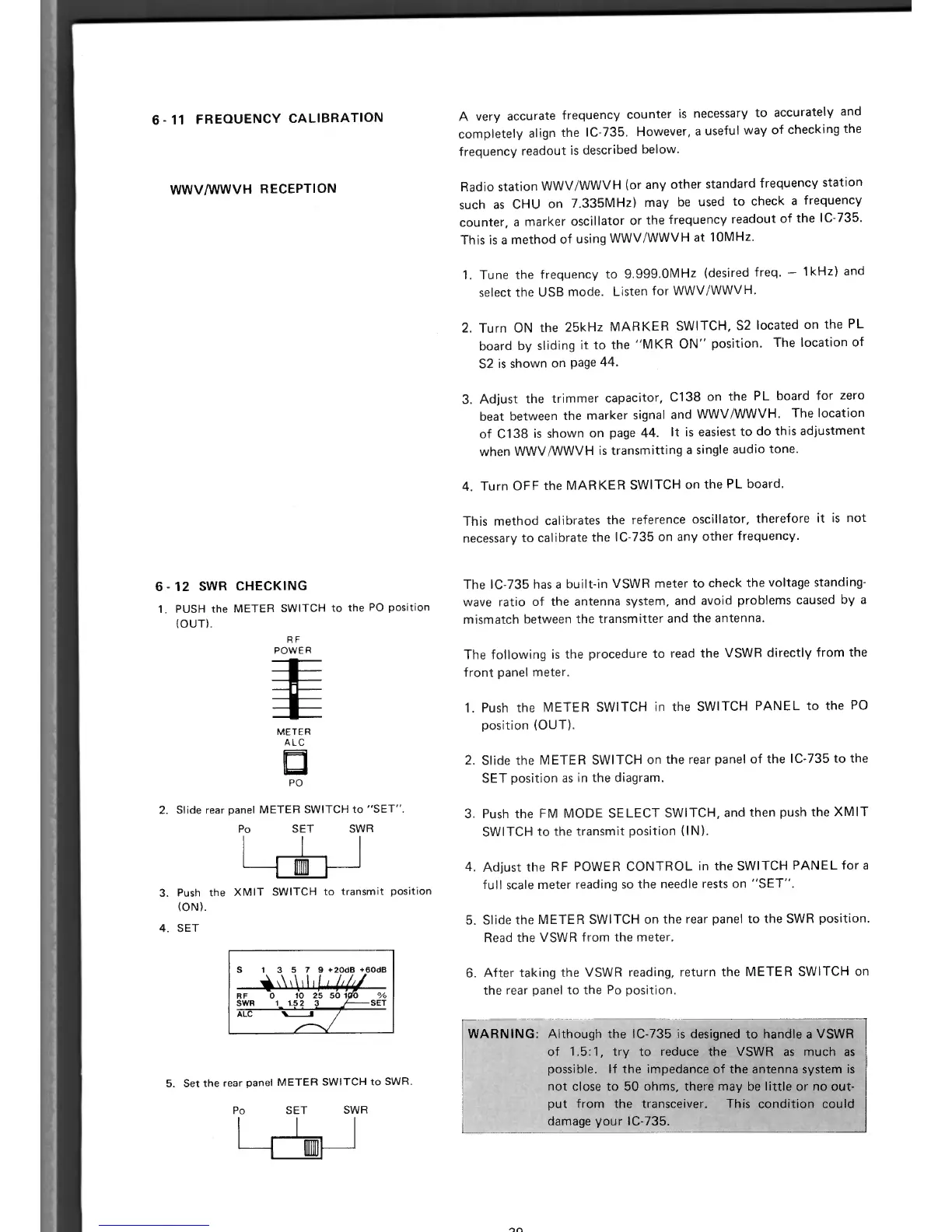 The IC-735 has a built-in VSWR meter to check the voltage standing-