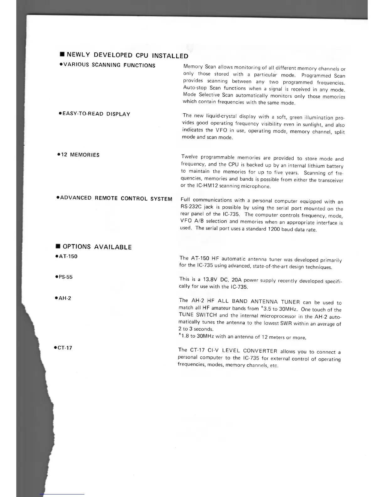 for the IC-735 using advanced, state-of-the-art design techniques.