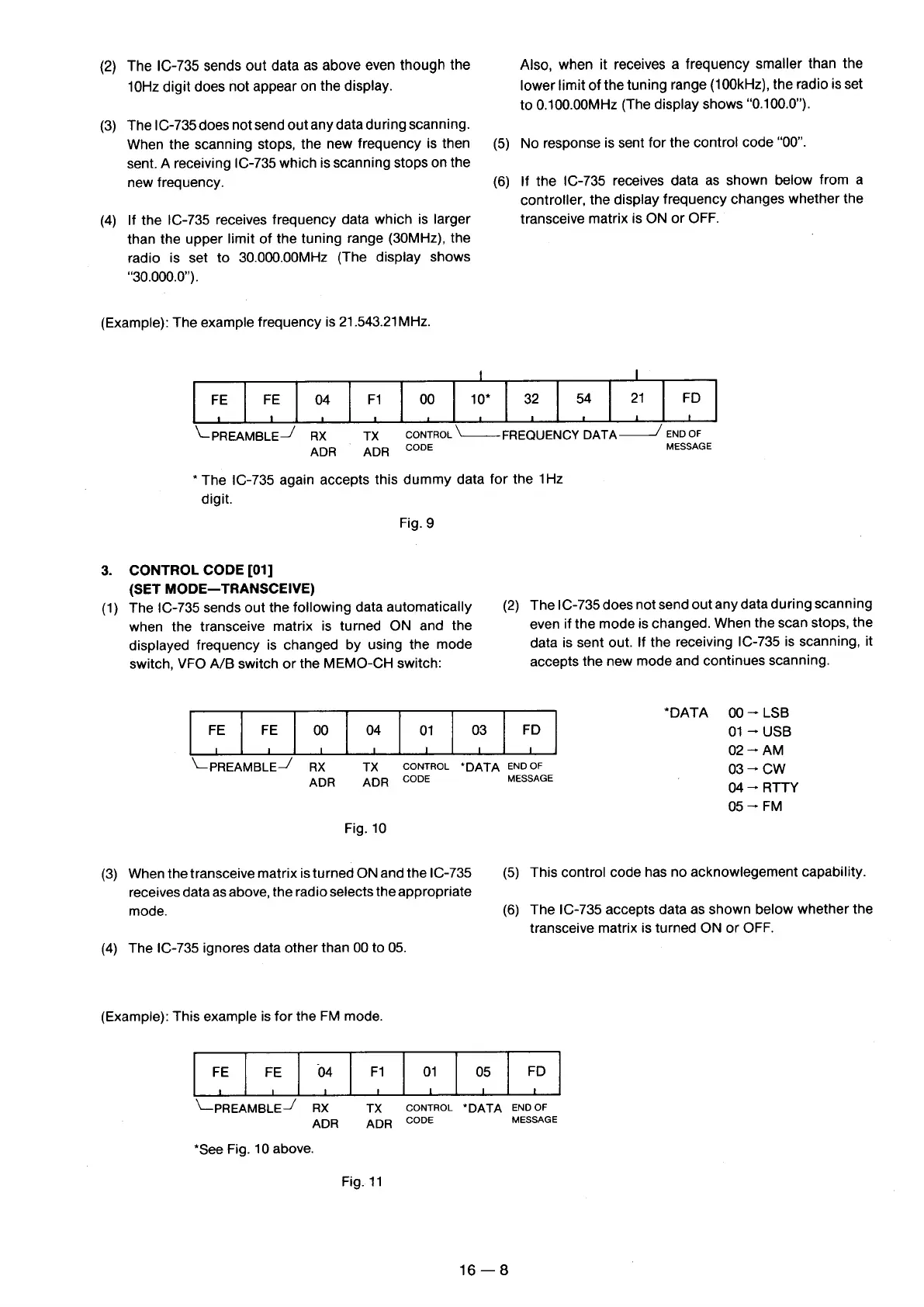 Icom IC-735 - Control Code [01] (Set Mode-Transceive)