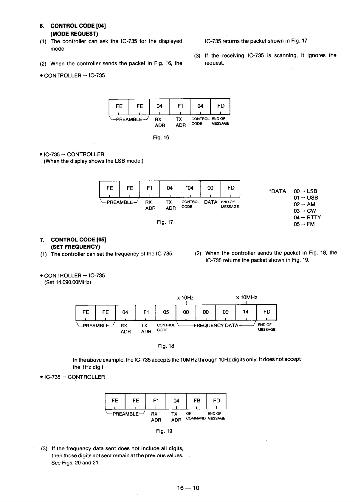 Icom IC-735 - Control Code [04] (Mode Request); Control Code [05] (Set Frequency)