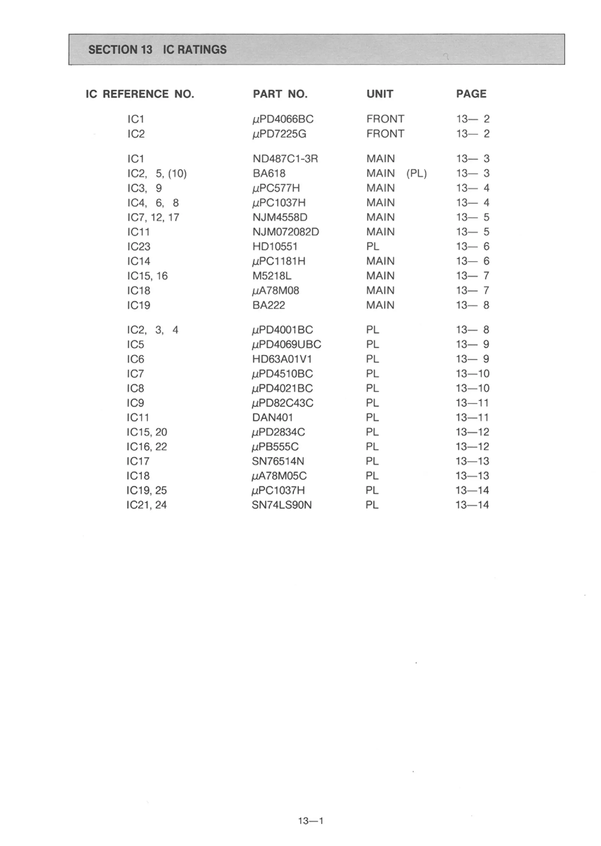 Icom IC-735 - IC Ratings
