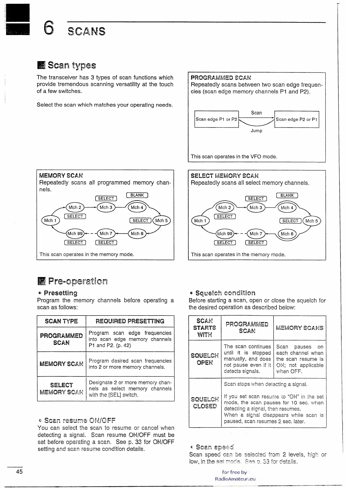Icom IC-738 - Scans; Scan Types; Pre-Operation; Presetting