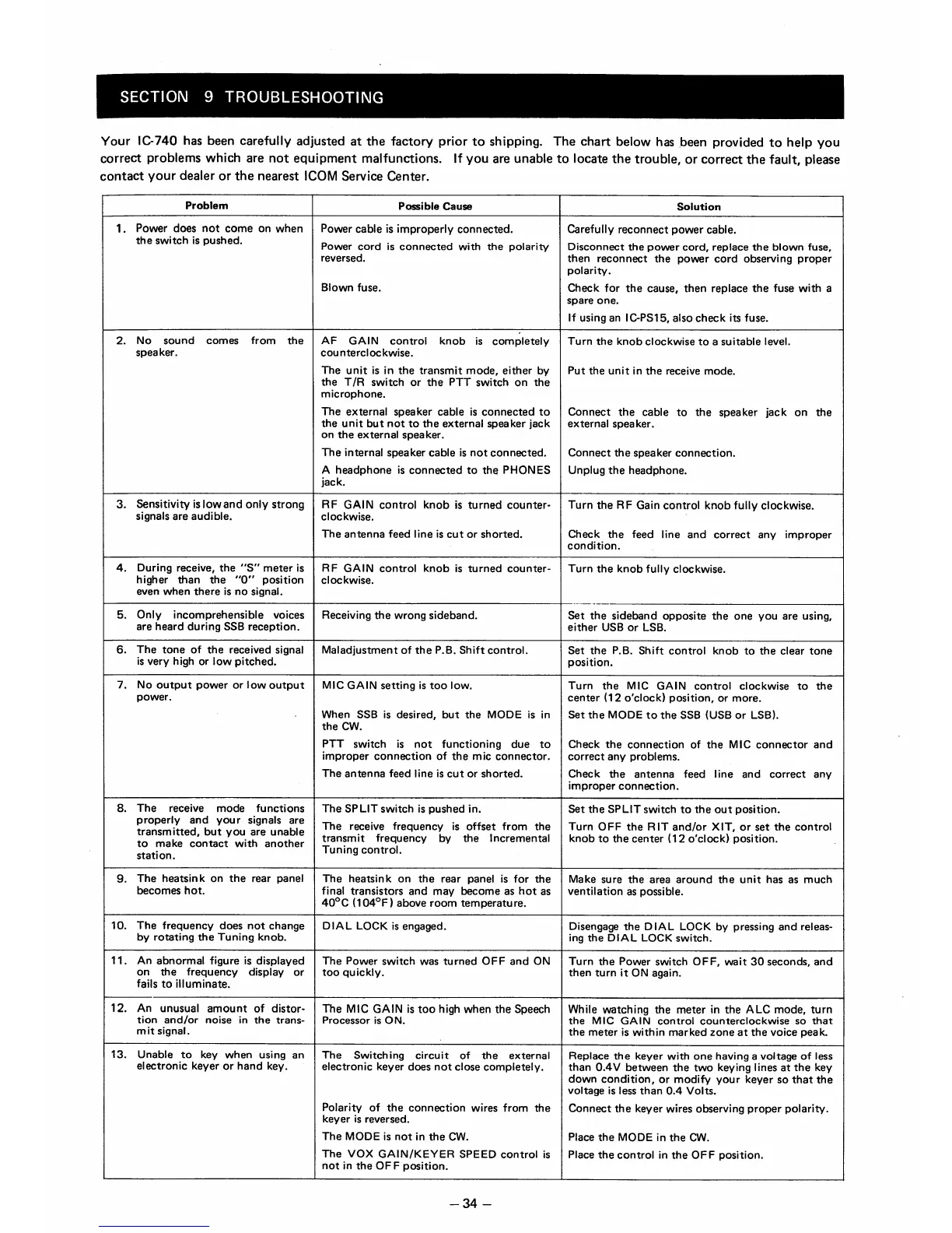 Icom IC-740 - IC-740 Troubleshooting Guide; Common Problems and Solutions