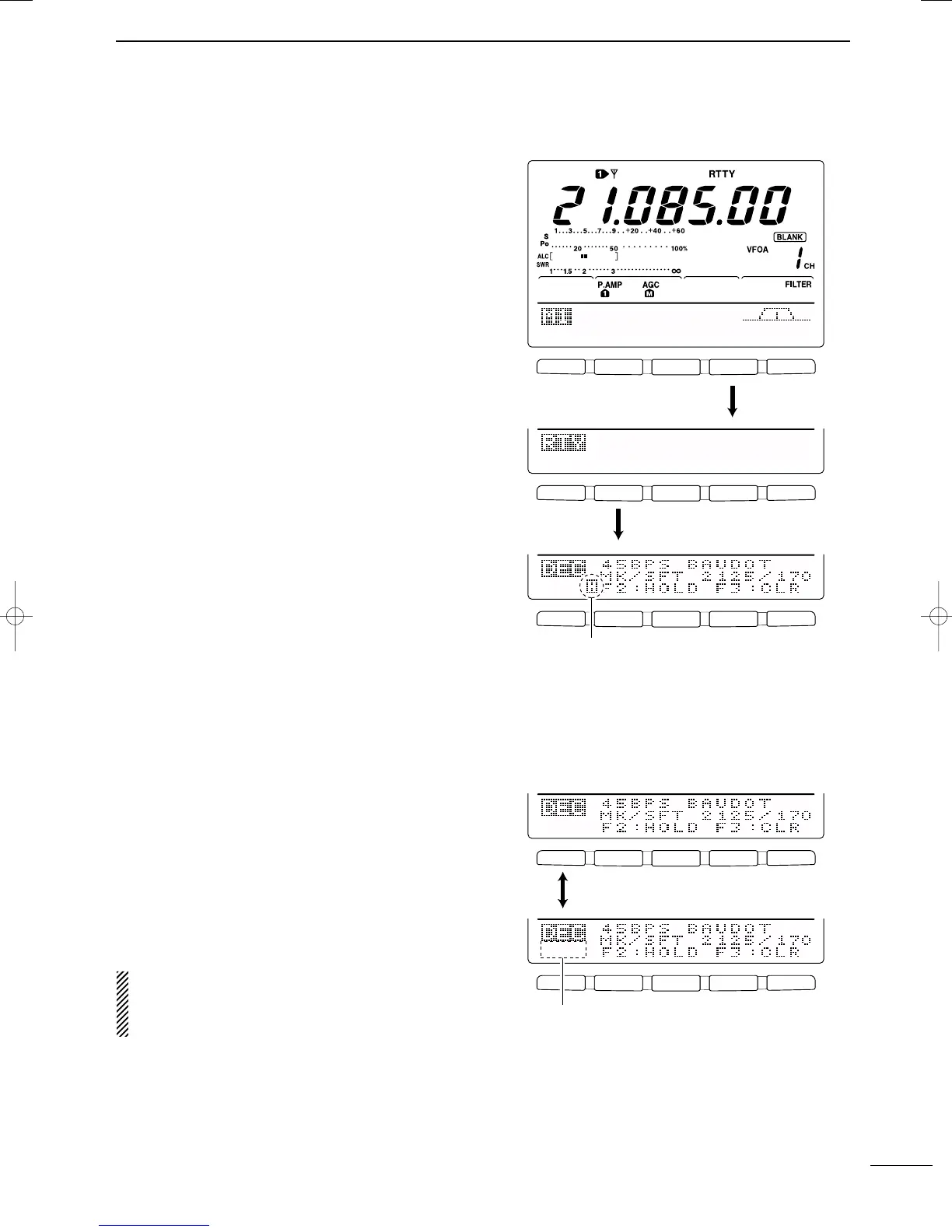 •After RTTY mode is selected, push [CW/RTTY] for 1 sec.