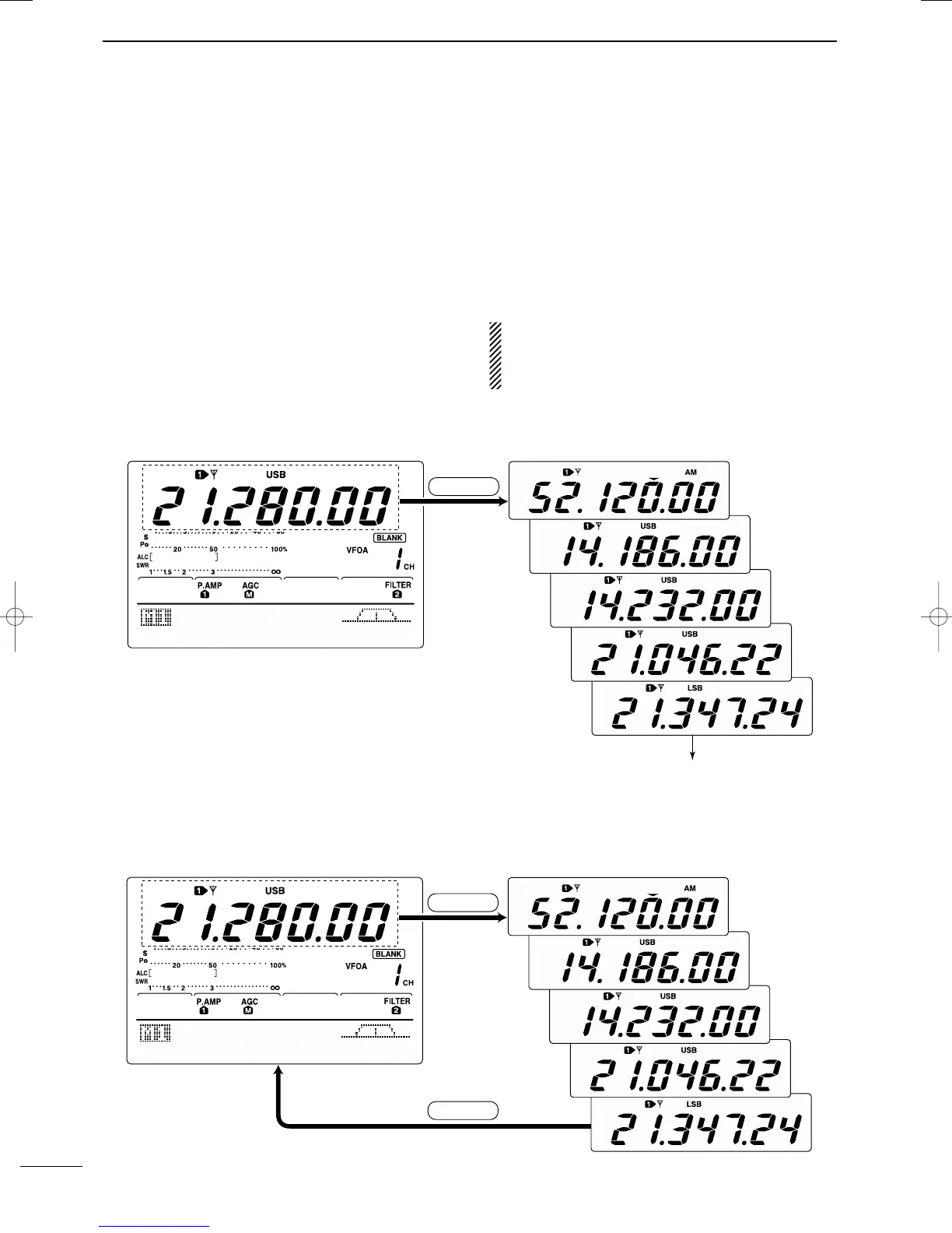 In this example, pushing [MP-W] enters 21.28000 MHz