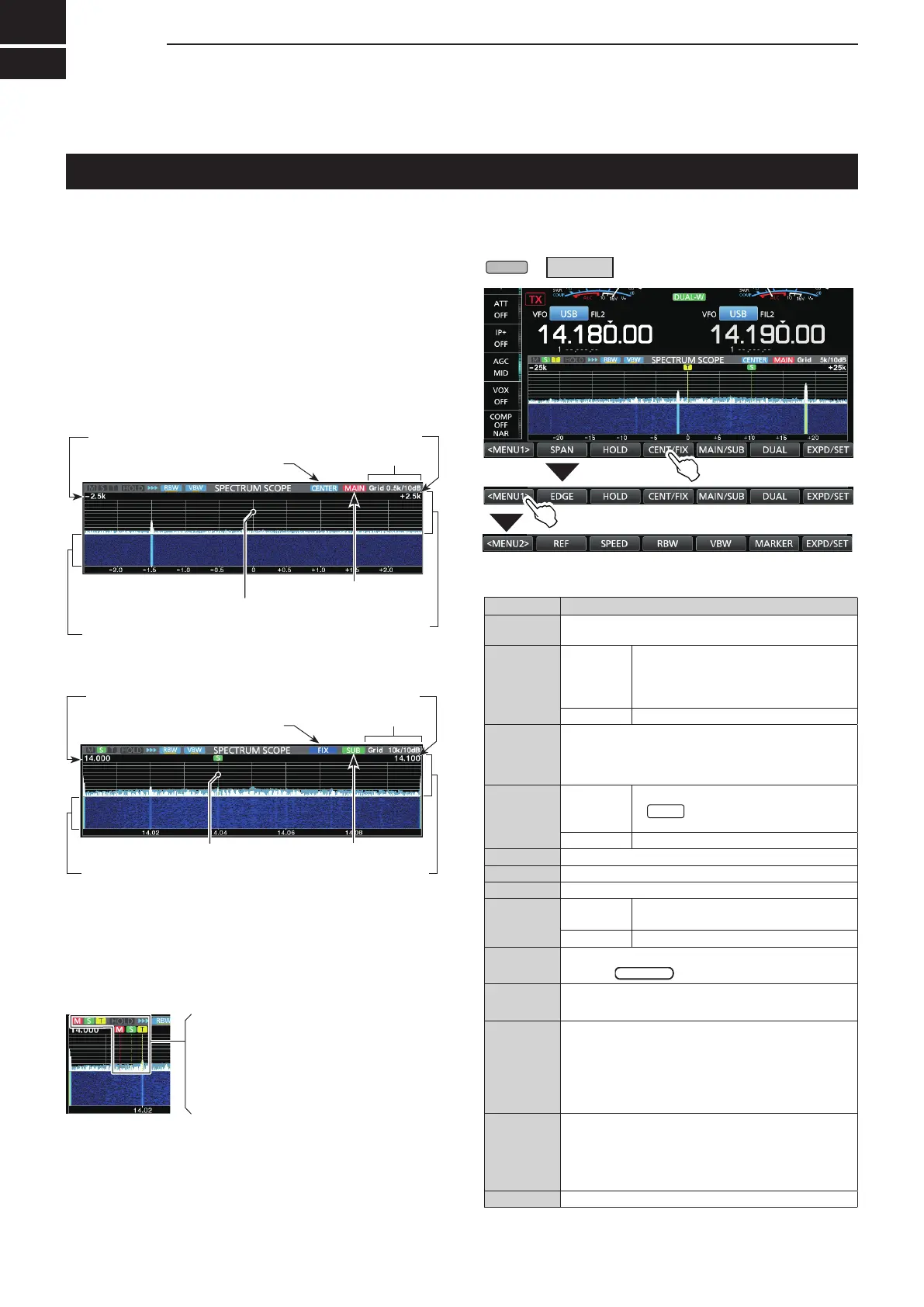 the Main and Sub bands in the SPECTRUM SCOPE