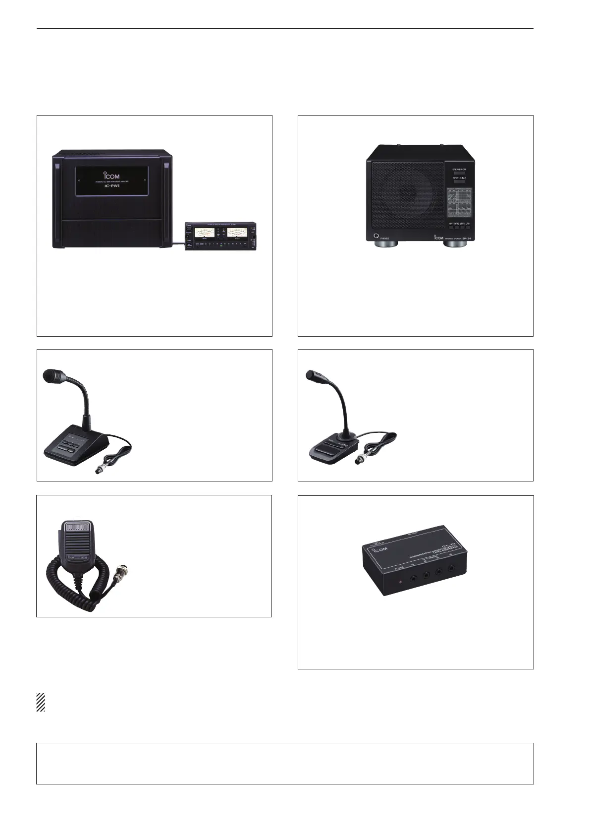 Approved Icom optional equipment is designed for optimal performance when used with an Icom transceiver.