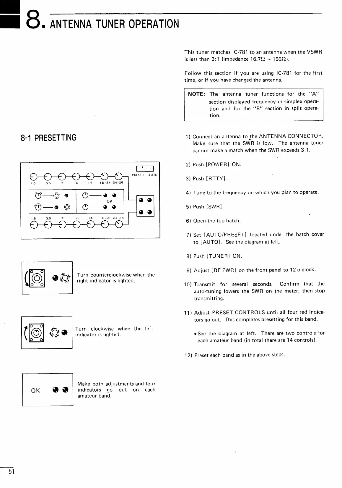 Icom IC-781 - Antenna Tuner Operation; Antenna Tuner Presetting