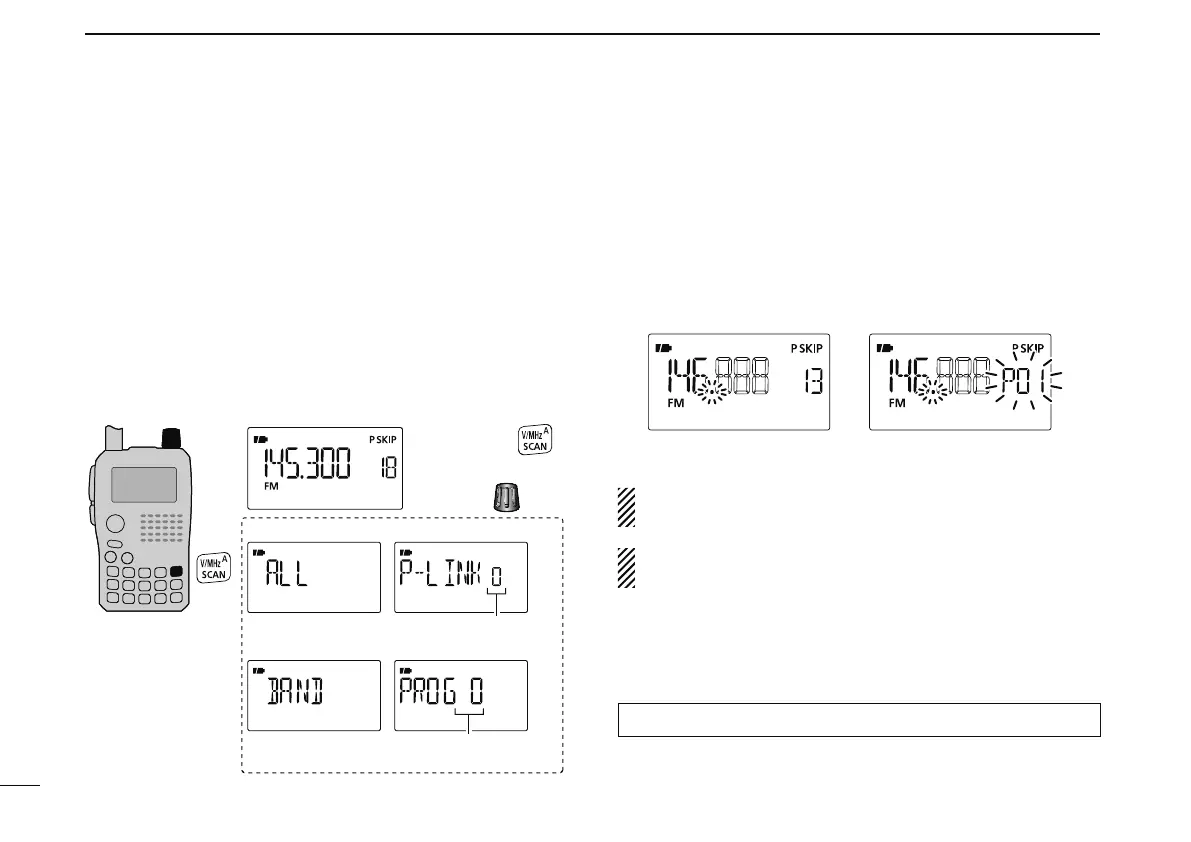 e Push and hold [SCAN](V/MHz) for 1 sec. to enter the scan-