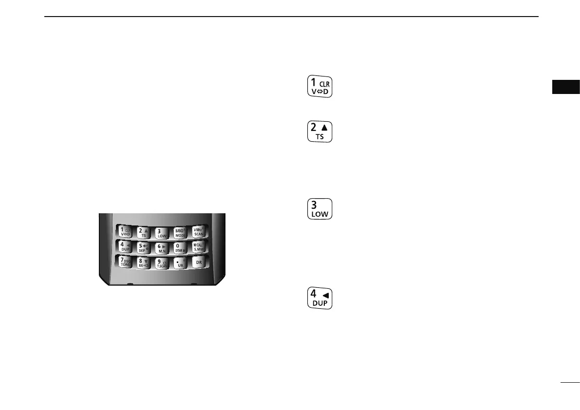 ± Push to input numeral for frequency input, memory chan-
