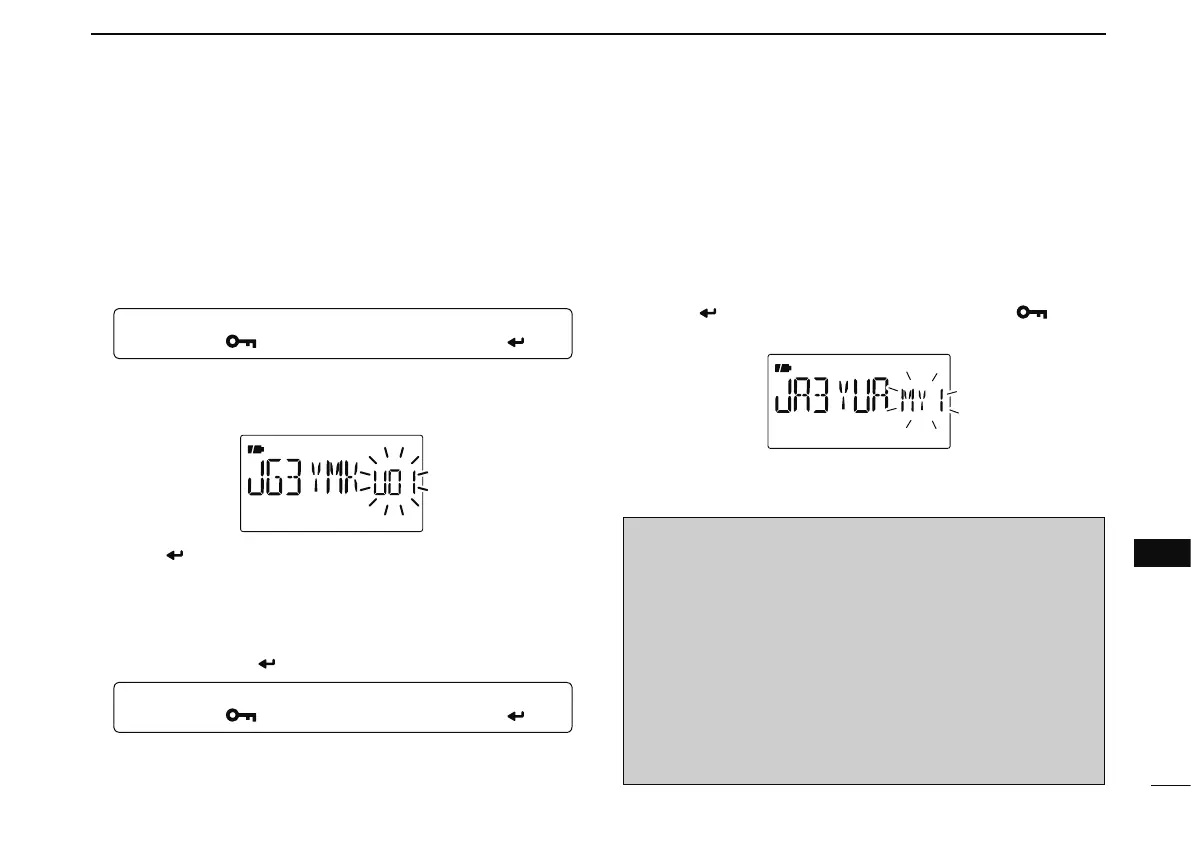 u Push [ ](5) to set call sign and push [MENU ] to re-