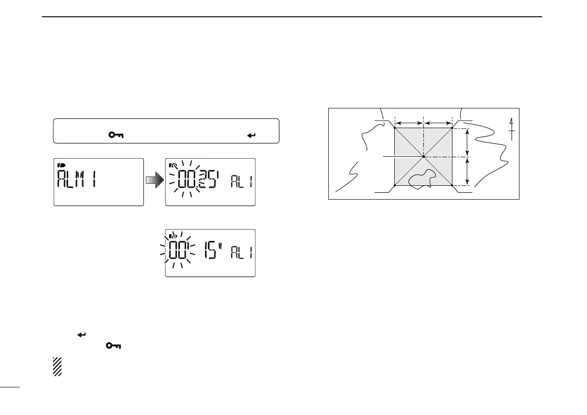 Sets GPS alarm active range from 00.08 to 59.99 in 00.01