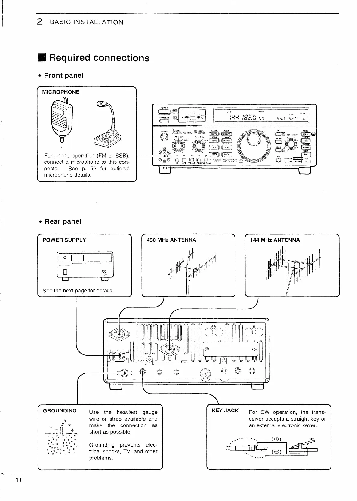 Icom IC-820H - Required Connections for Operation; Front Panel Microphone Connection; Rear Panel Connections Overview