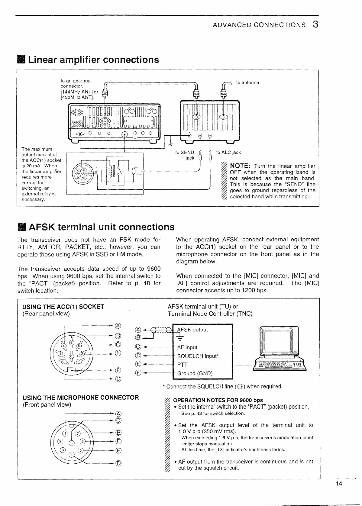 Icom IC-820H - External Equipment Connections; Linear Amplifier and AFSK Terminal Unit Connections