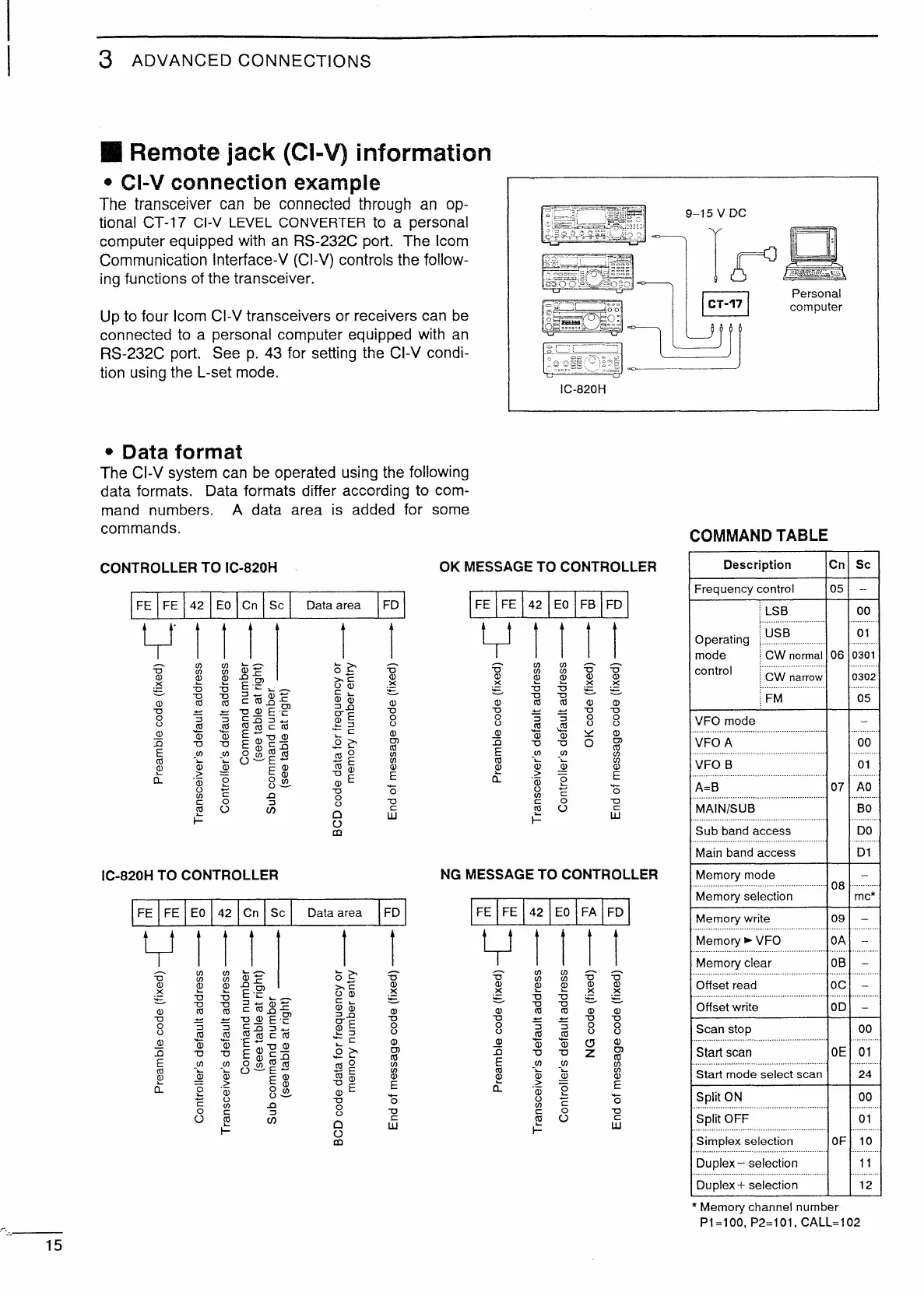 Icom IC-820H - Remote Control and Data Communication; CI-V Connection and Data Format