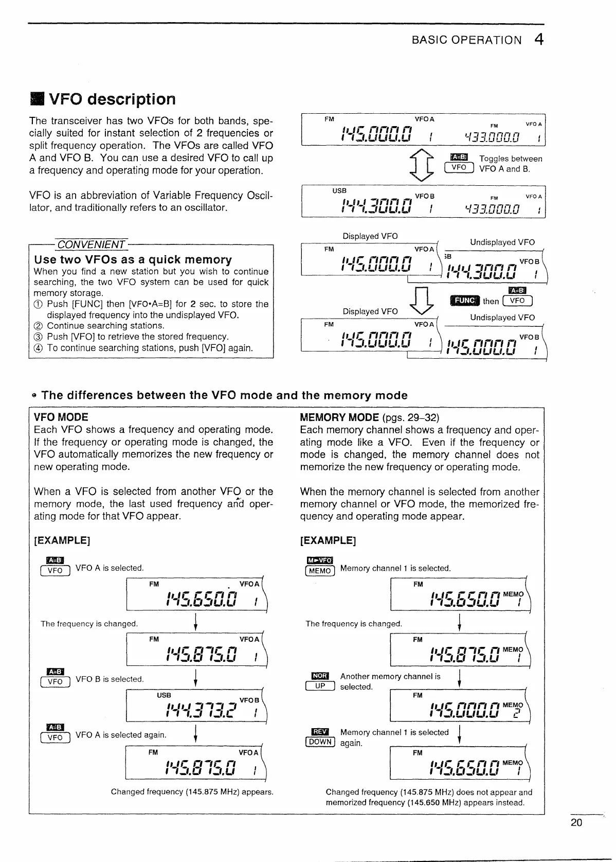 Icom IC-820H - VFO and Memory Mode Differences; VFO Description and Usage; VFO vs. Memory Mode Comparison