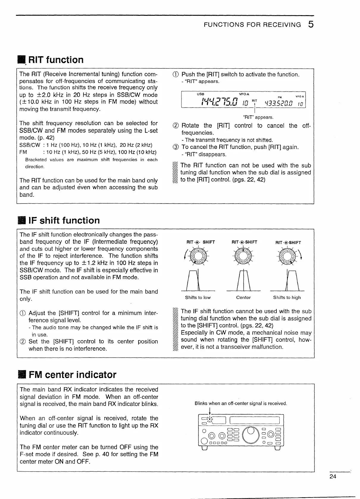 Icom IC-820H - Detailed Receiving Functions; RIT and IF Shift Function Details; FM Center Indicator Function