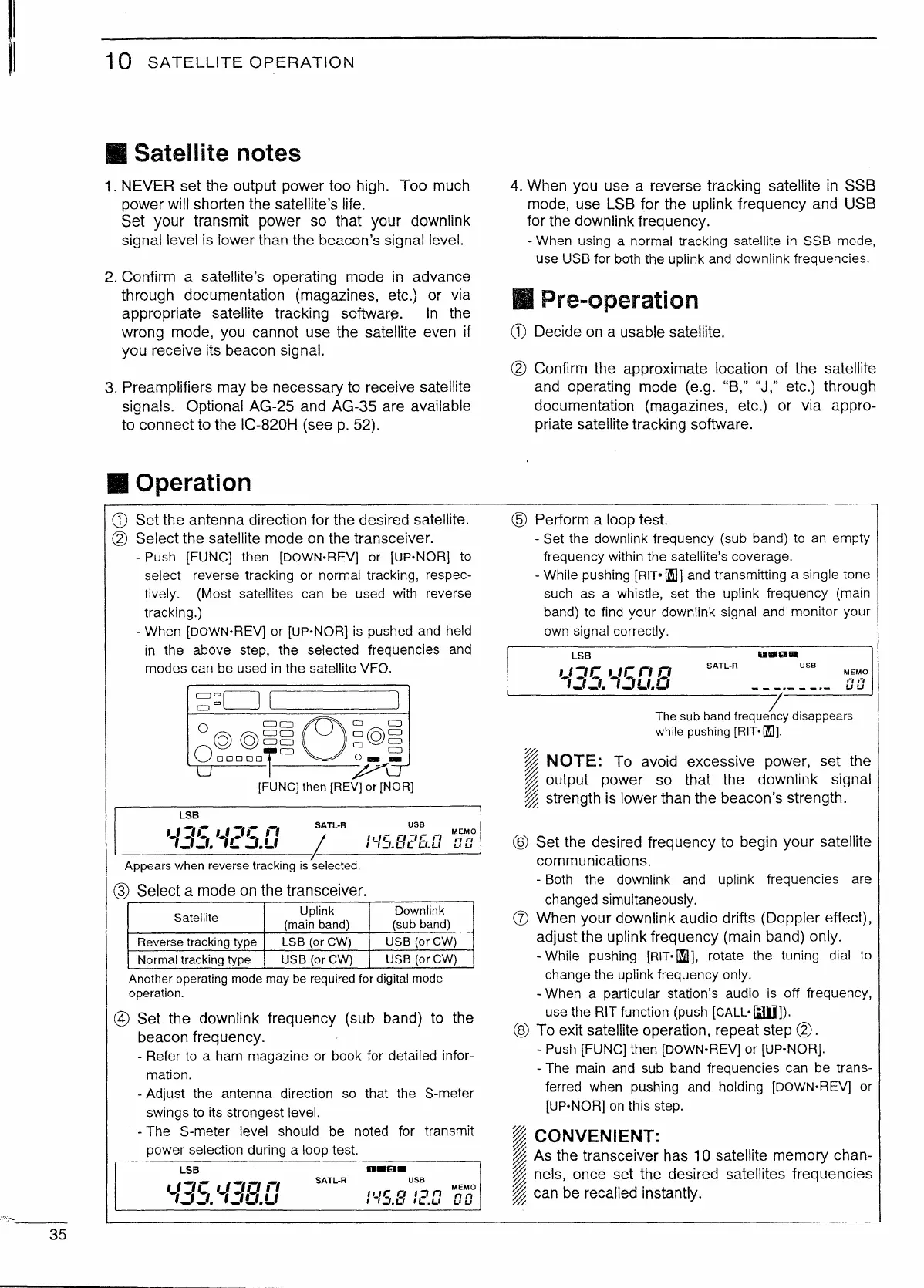 Icom IC-820H - Satellite Operation Guidelines; Important Satellite Operation Notes; Pre-Operation and Satellite Selection