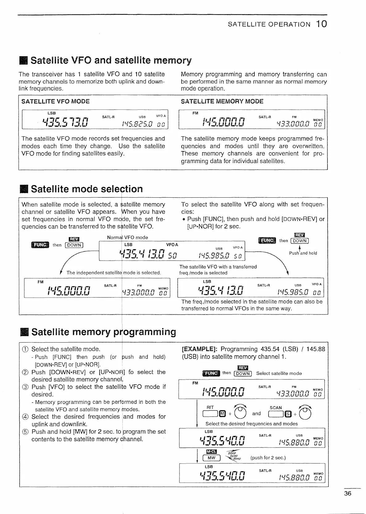 Icom IC-820H - Satellite VFO and Memory Management; Satellite VFO and Memory Modes; Satellite Mode Selection and Programming