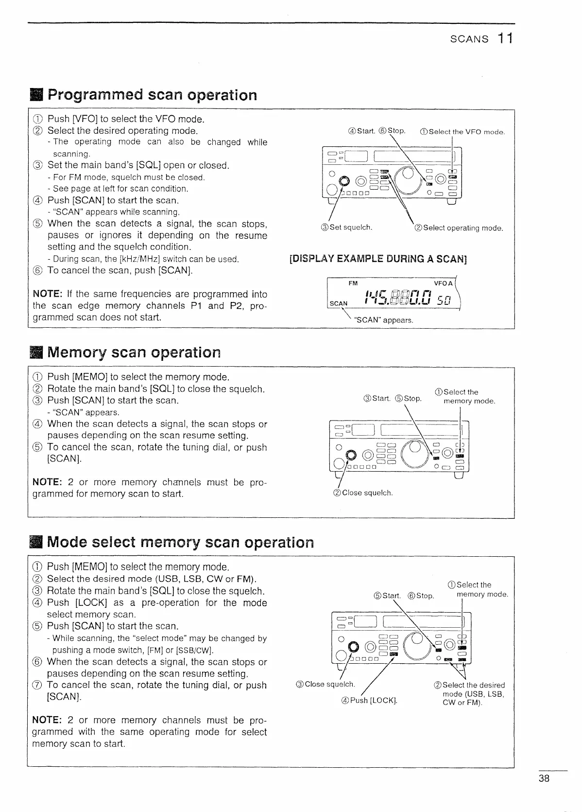 Icom IC-820H - Performing Scan Operations; Programmed Scan Operation; Memory and Mode Select Scan Operations