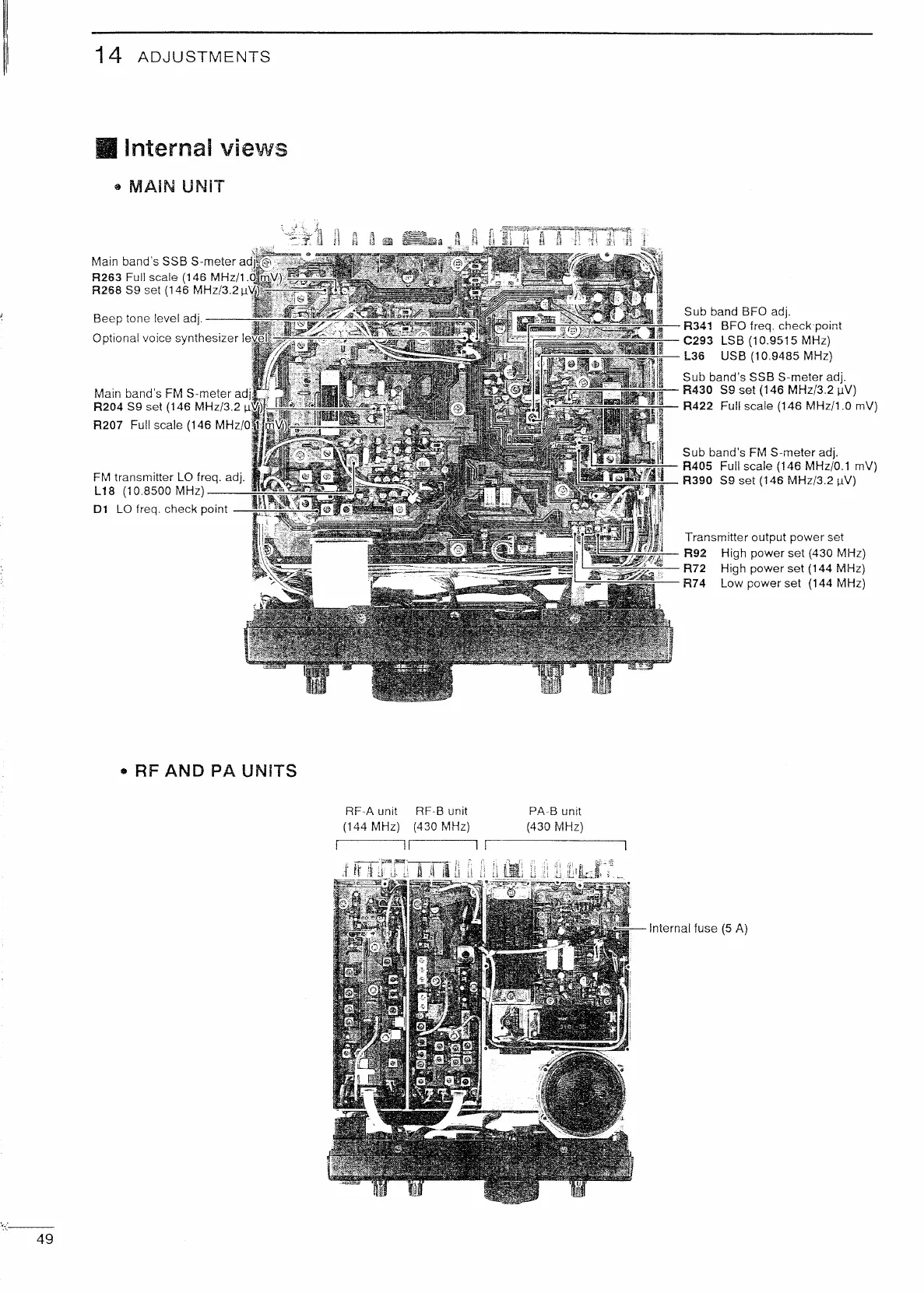 Icom IC-820H - Internal Views and Adjustments; Main Unit Internal Views and Adjustments; RF and PA Units Internal Views