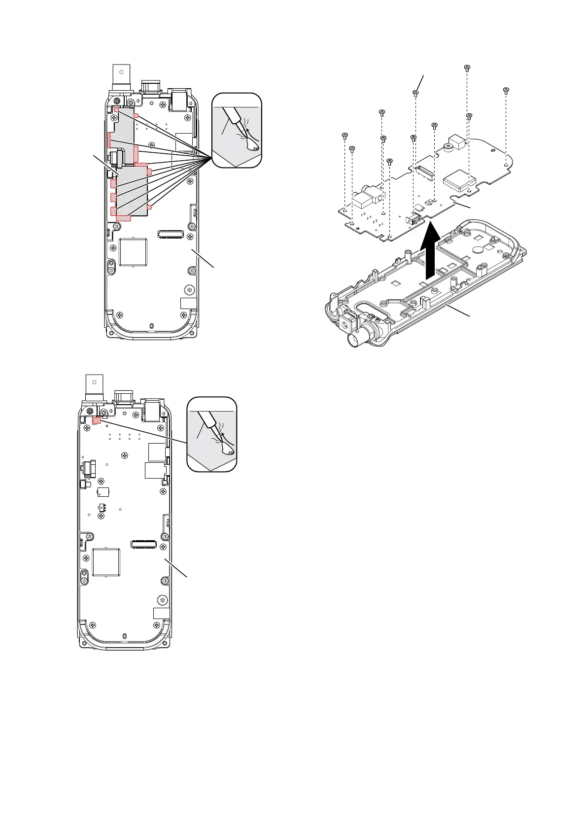 Unsolder 11 points on the shield plate, and then 1)