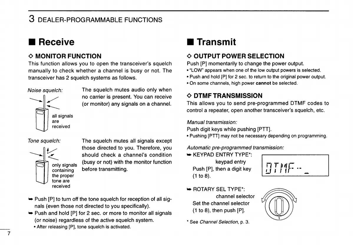 Push [Pl to turn off the tone squelch for reception of all sig-