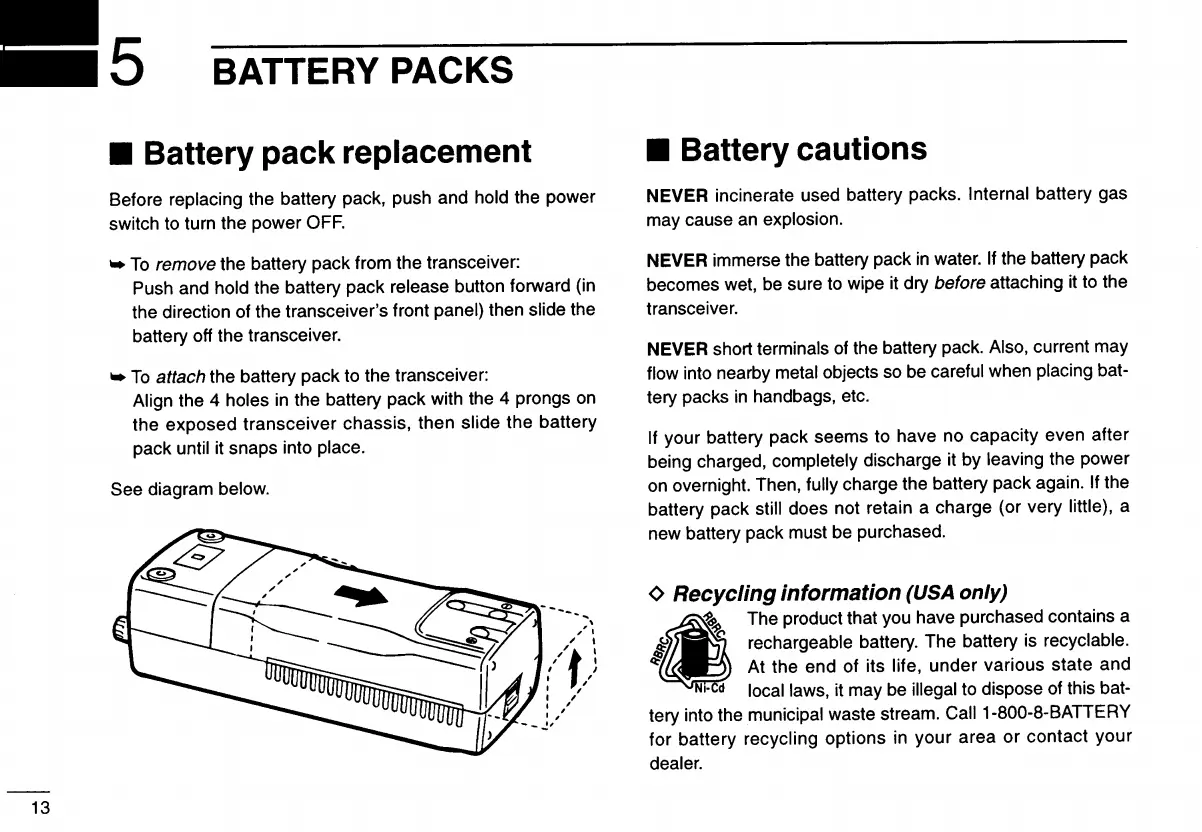 remove the battery pack from the transceiver: