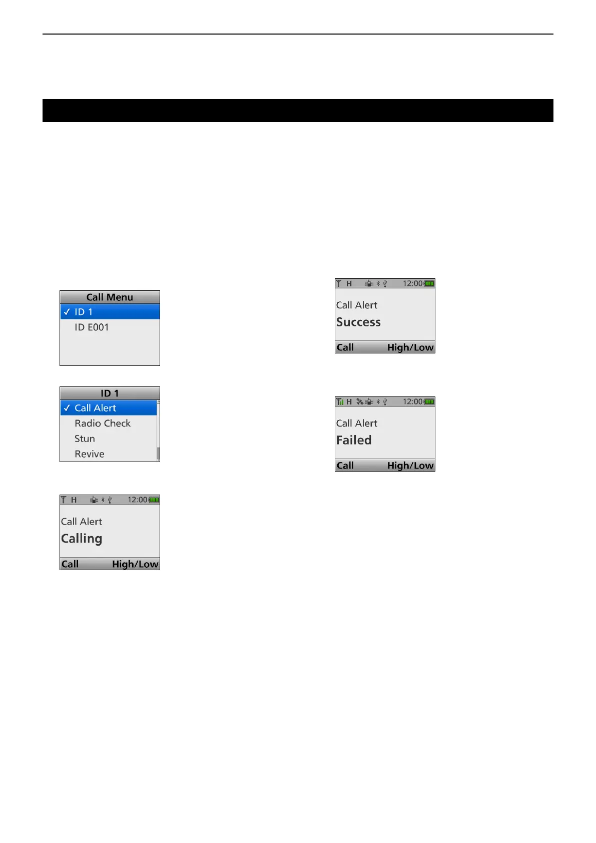 • After transmitting the Call Alert call, returns to the