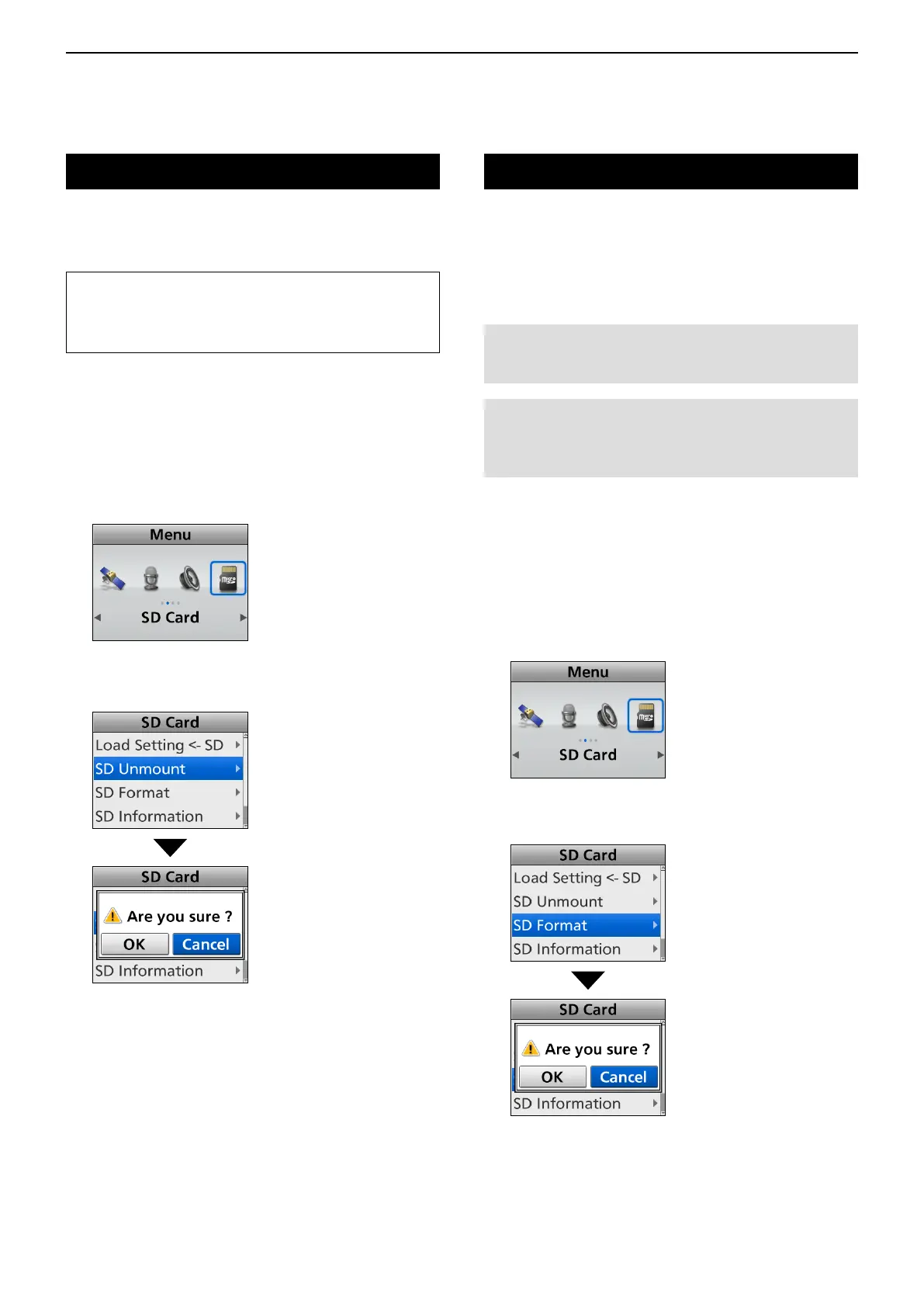 3. Push [Up] or [Down] to select “SD Unmount,” then