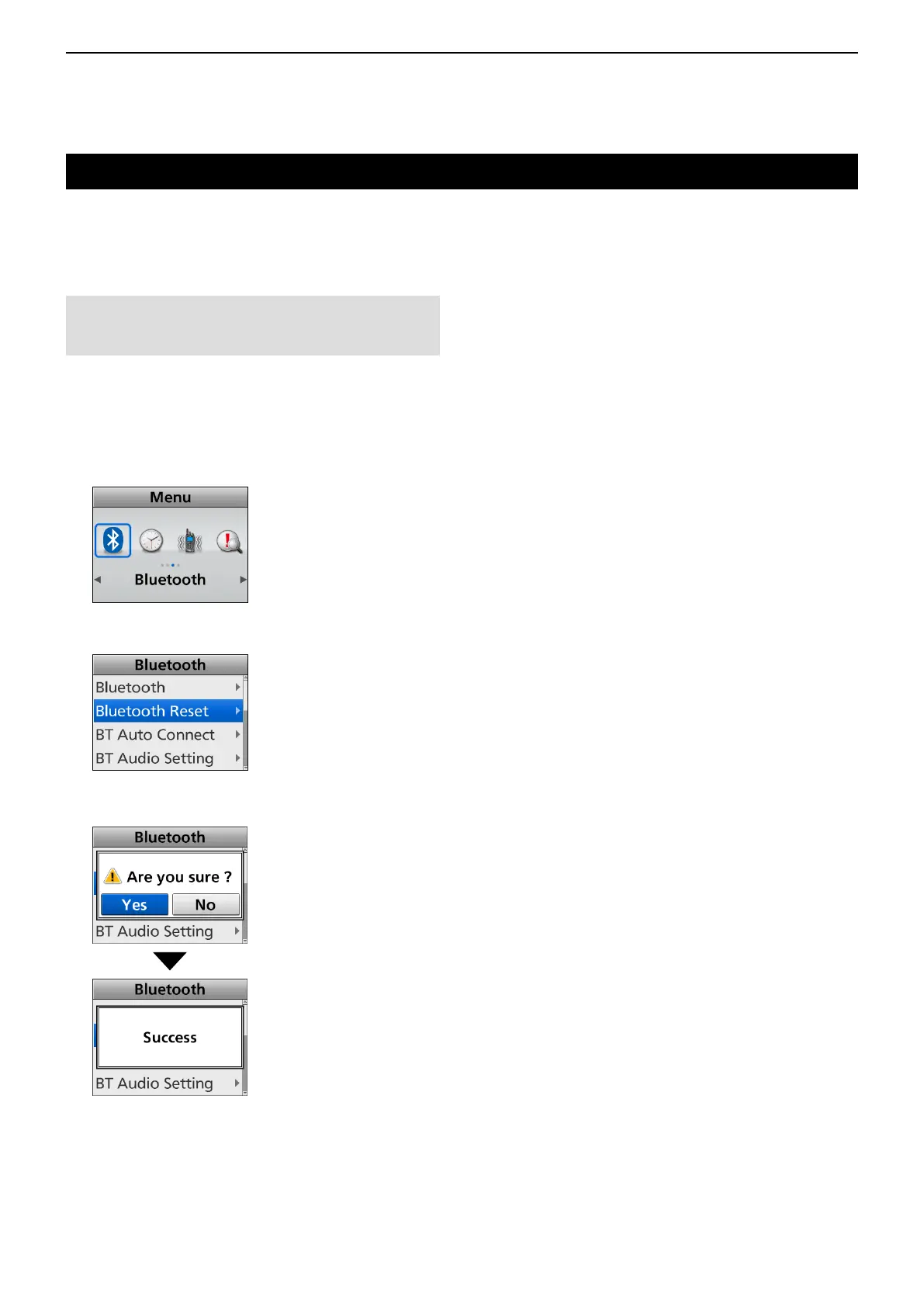 3. Push [Up] or [Down] to select “Bluetooth Reset,”