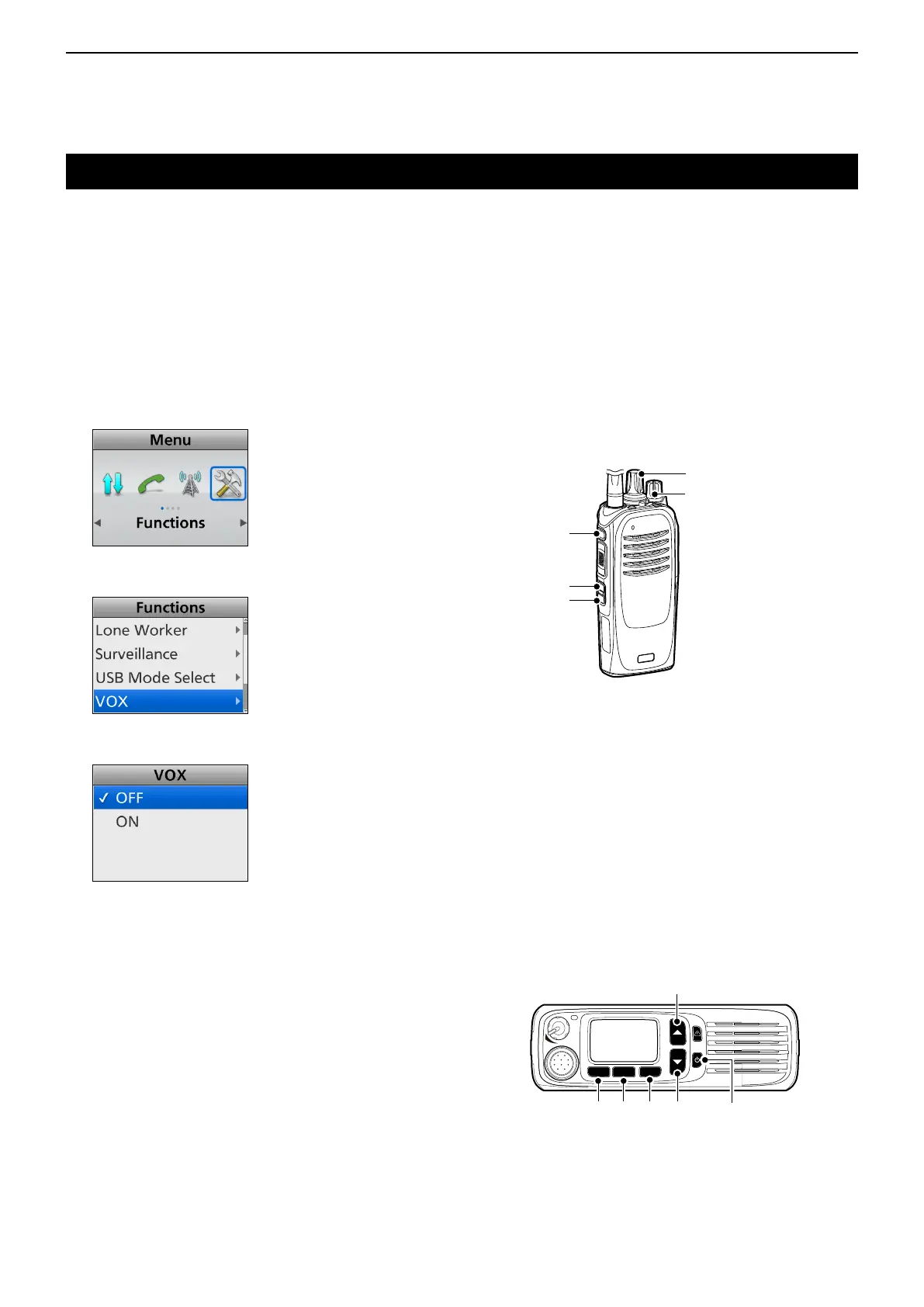 • The transceiver enters the VOX function Set mode.