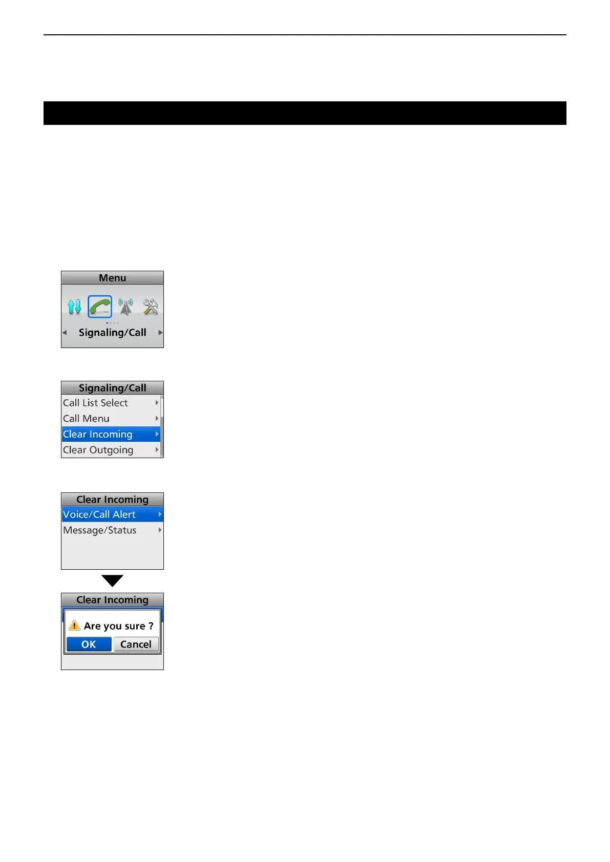 3. Push [Up] or [Down] to select “Clear Incoming,”