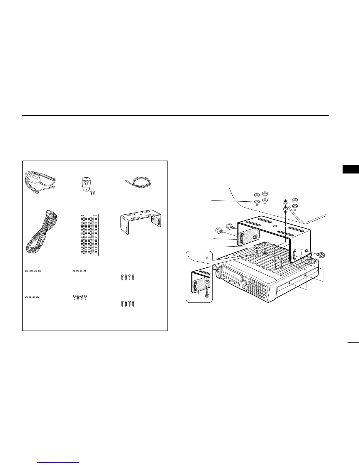Icom IC-F5022 - Connection and Maintenance: Installation; Included Supplied Accessories List; Secure Transceiver Mounting Procedures