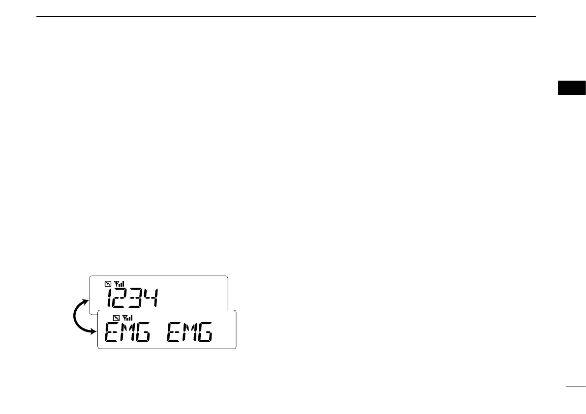 • The calling station ID (or alias) and “EMG EMG” are displayed
