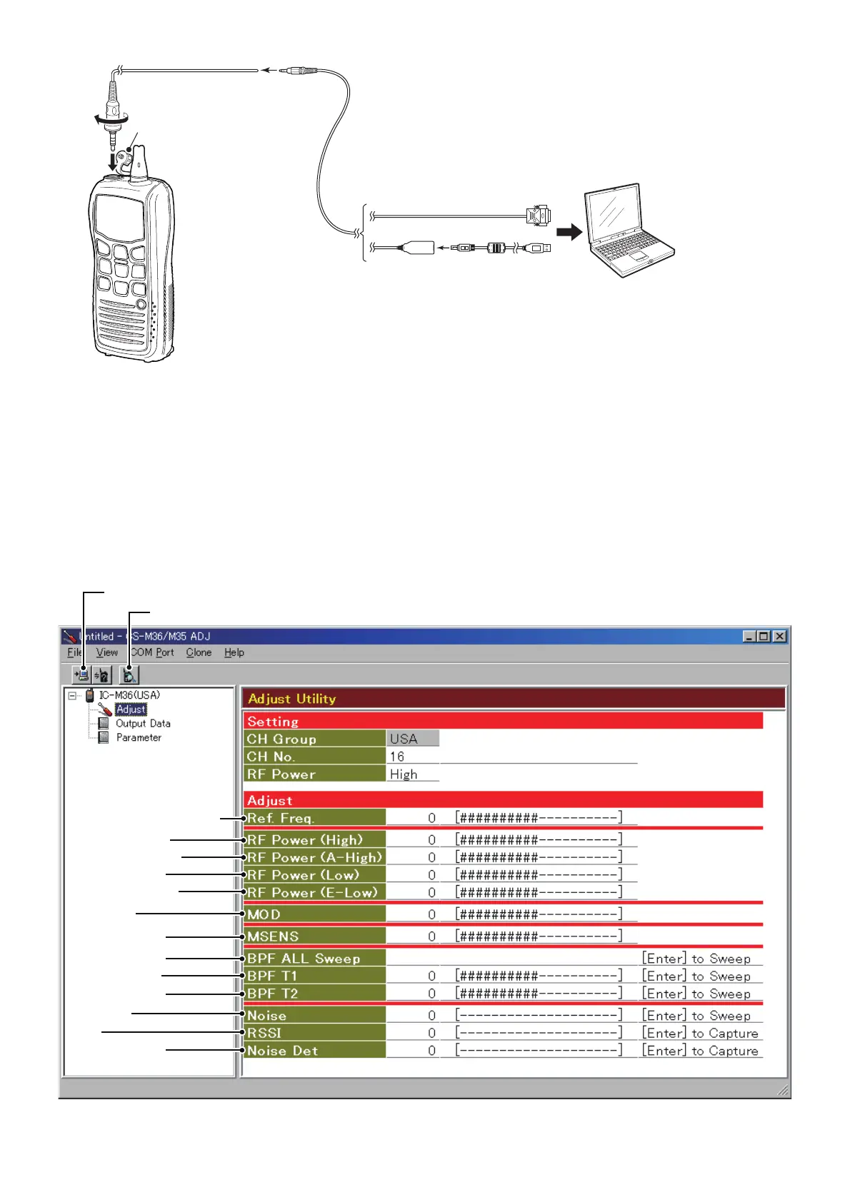 (The values shown in the above screen are example only. Each transceiver has their own values.)