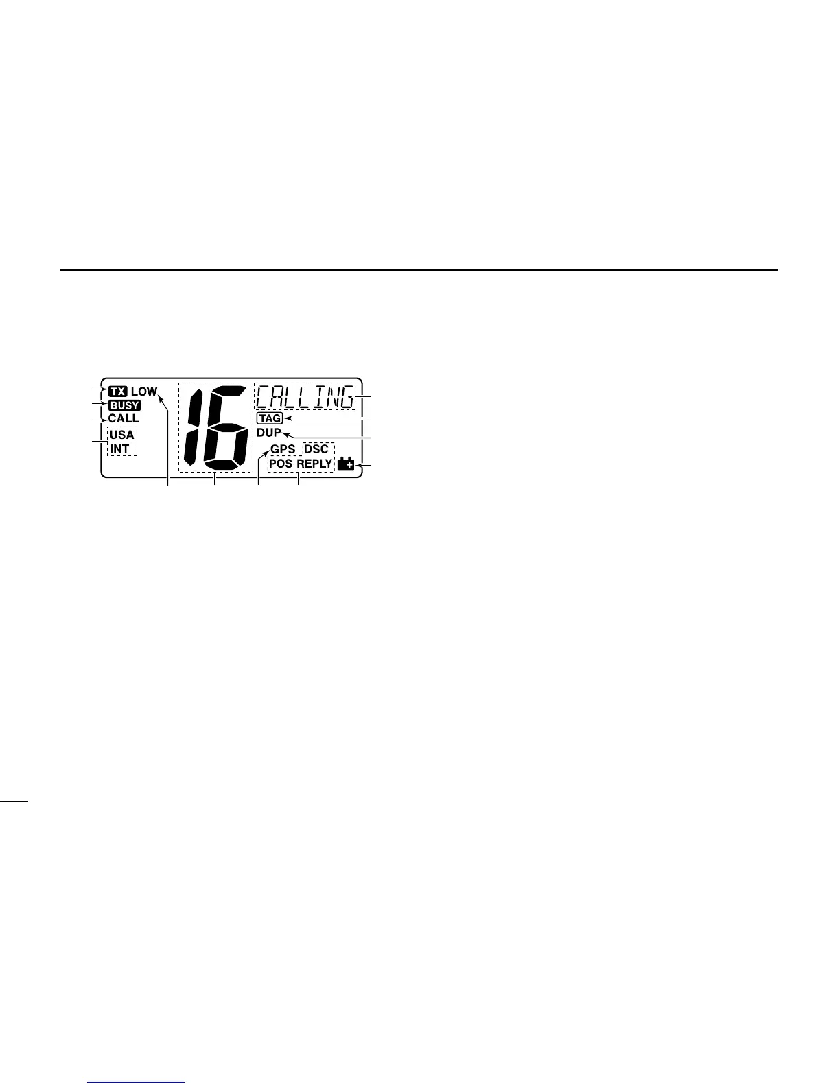 • “DSC” appears when a DSC call is received. (pgs. 22, 32)