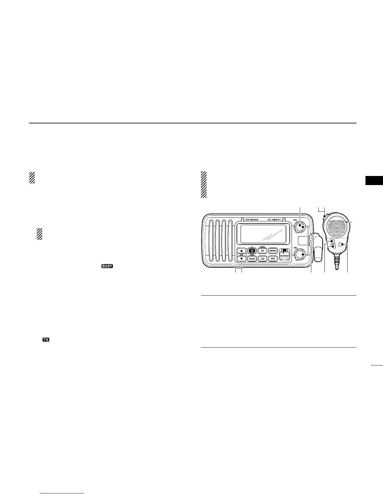 y Push and hold [PTT] to transmit, then speak into the mi-