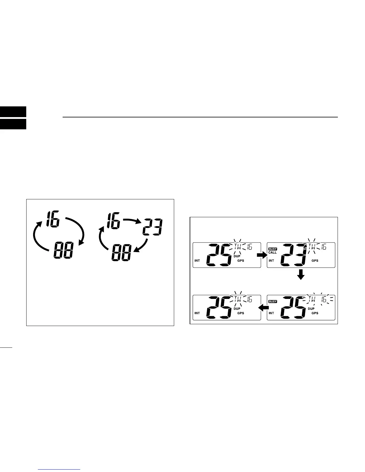 • “DW” blinks during Dualwatch; “TW” blinks during Tri-watch.
