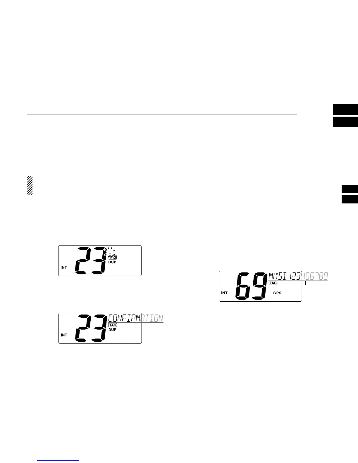 • “CONFIRMATION” scrolls at the channel comment indicator.