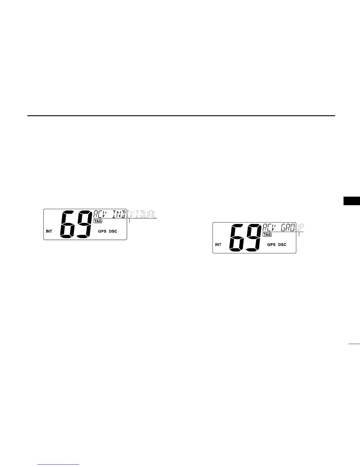 ➥ “DSC” appears and “RCV GROUP” scrolls at the channel