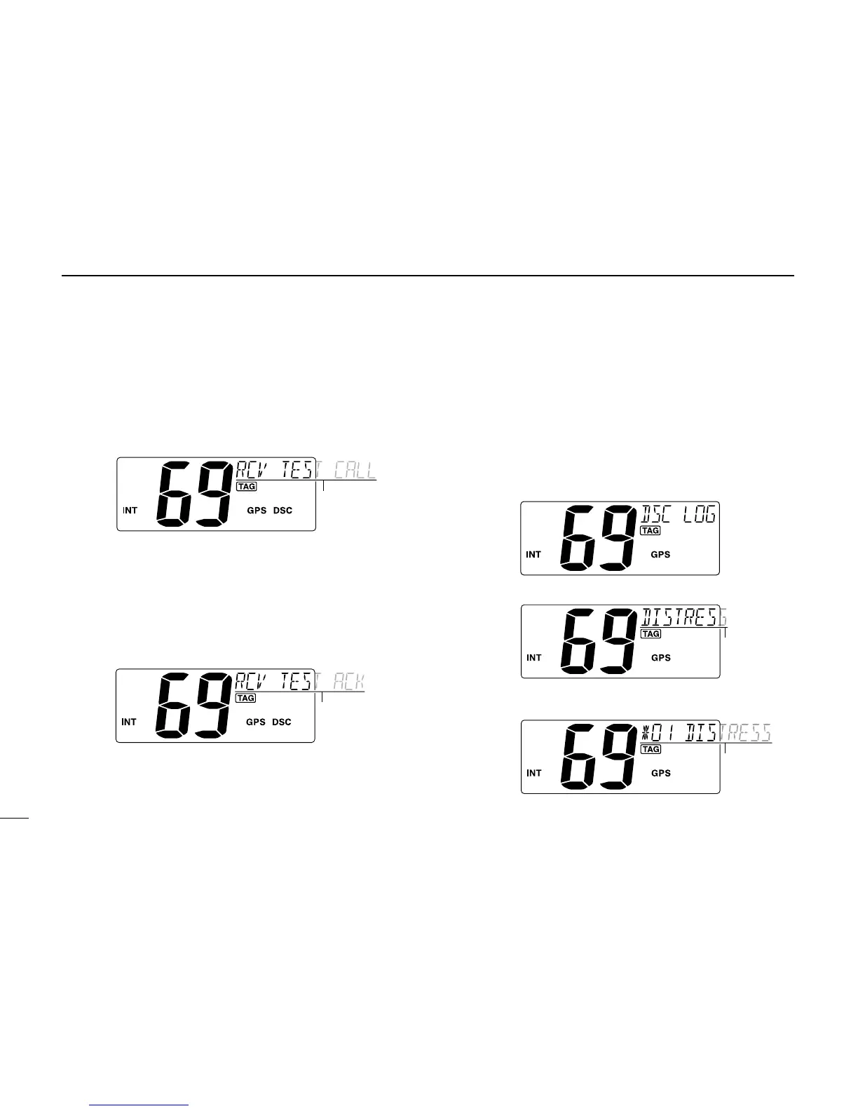 ➥ “DSC” appears and “RCV TEST ACK” scrolls at the chan-