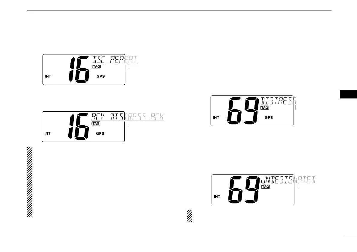 w Push [s] or [t] to select “DISTRESS,” and then push