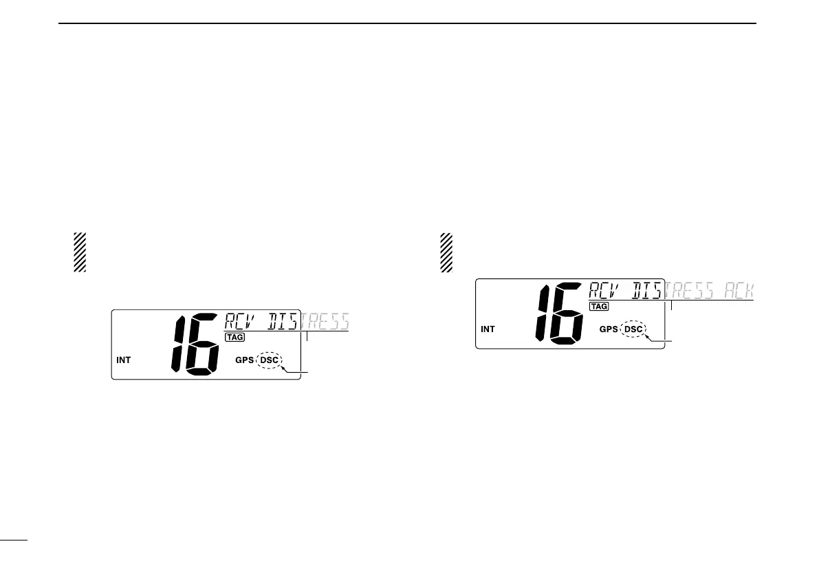 ➥“DSC” appears and “RCV DISTRESS ACK” scrolls in the