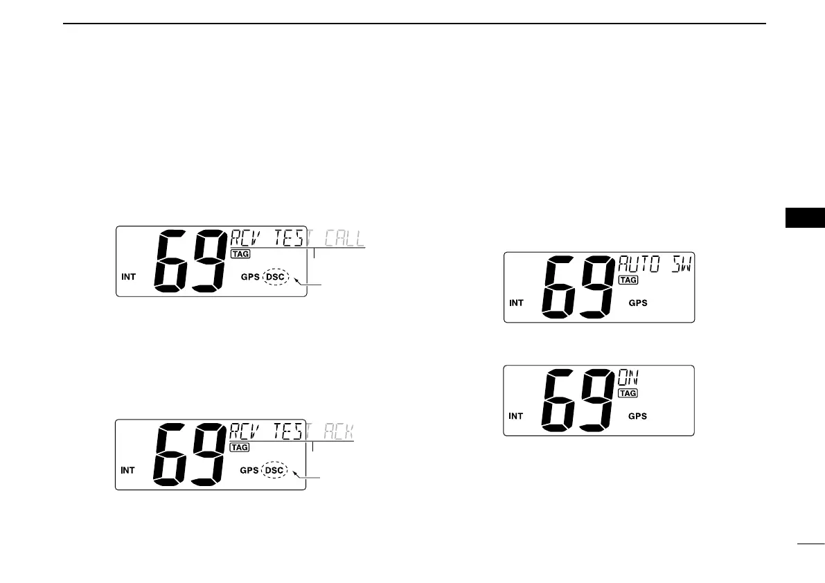 ➥ “ DSC” appears and “RCV TEST ACK” scrolls in the chan-