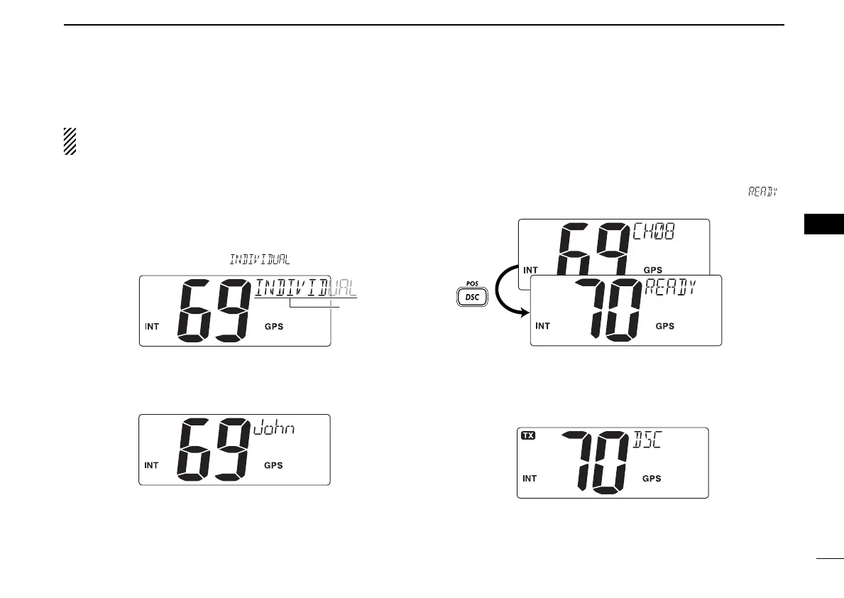 • After pushing [DSC•POS], Channel 70 is selected and “”