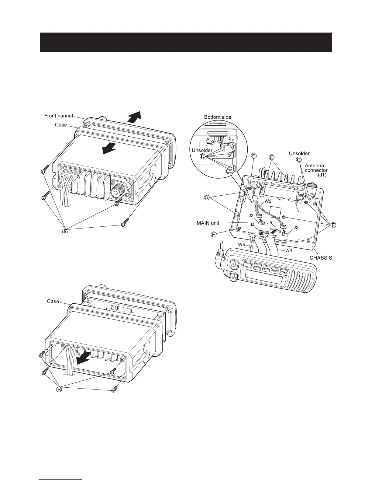 5 Unscrew 2 screws, E, and 6 screws, F, and 2 clips G