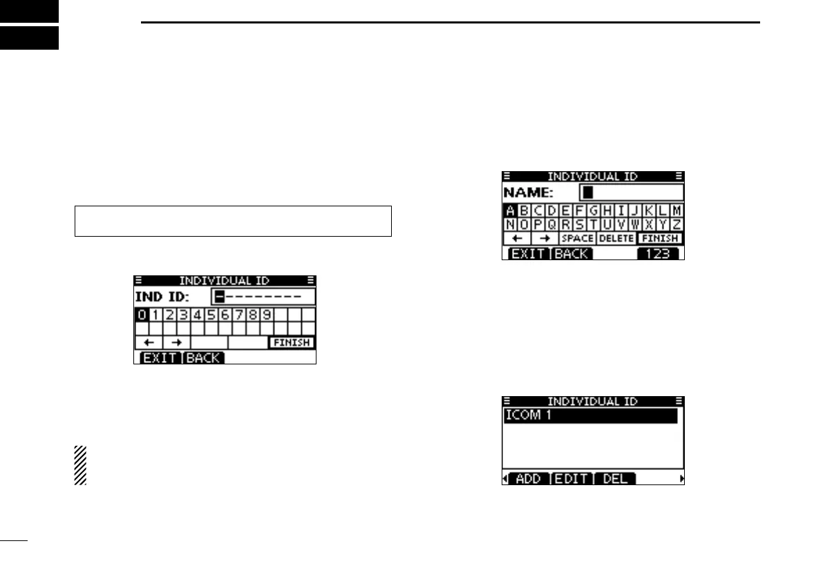 •The“INDIVIDUALID”entryscreenisdisplayed.